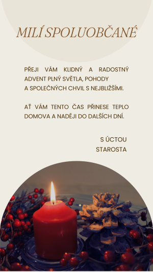 Adventní přání od starosty obce Vápenice pana Ferdinanda Kubáníka.